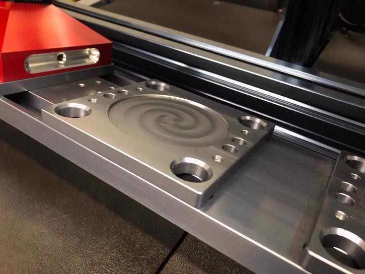 . The pallet sits on the docking plate.